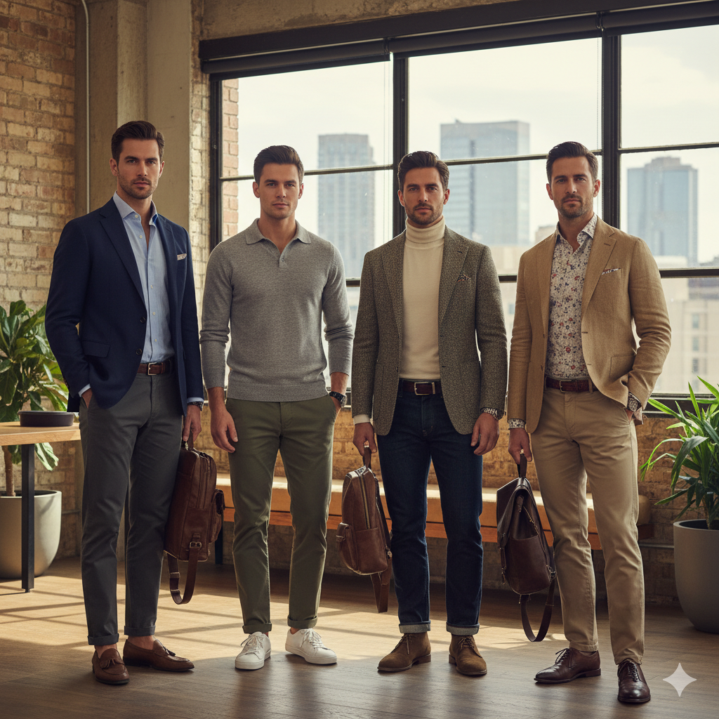 Mens stylish business casual. In today’s modern workplace, the line between formal and casual attire is becoming more blurred than ever. Men no longer have to wear stiff suits every day to look professional. Instead, business casual has become the go-to style for offices, meetings, and even casual networking events. But what exactly does business casual mean, and how can men look both stylish and professional while maintaining comfort?